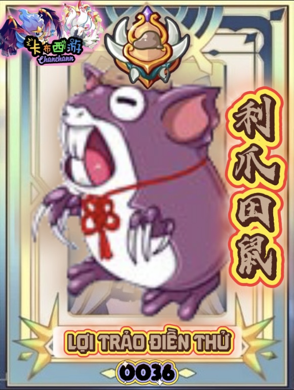 ![]() | ![]() | 暴戾 [BẠO LỆ] Loại: Phép thuật Thuộc tính: Đặc biệt Sức mạnh: 0 PP: 5 Mô tả: Trong 2 lượt kế tiếp gây dame chí mạng | 16 | 15% |