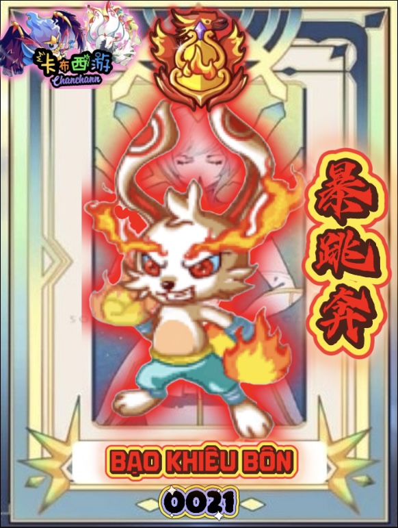 ![]() | ![]() | 火刃纷飞 [HỎA NHẬN PHÂN PHI] Loại: Phép thuật Thuộc tính: Hỏa Sức mạnh: 70 PP: 20 Mô tả: 5% đối thủ bị Bỏng | 5 | 20% |