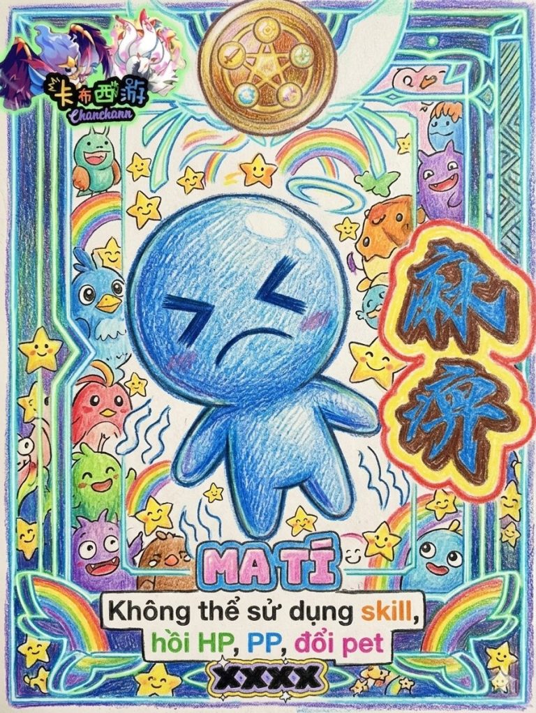 ![]() | ![]() | 灵魂镇压 [LINH HỒN TRẤN ÁP] Loại: Phép thuật Thuộc tính: Đặc biệt Sức mạnh: 0 PP: 10 Mô tả: Xóa tất cả buff của đối thủ, nếu thành công, bản thân Kháng phép tăng x1 | 8 | 40% |