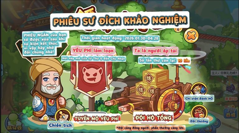 Phần thưởng:Sách [THƯỢNG THIỆN ĐỊCH TRẦN], sách [CHÂN.CUỒNG ĐÀO HẢI LÃNG], SKIN, ITEM,…