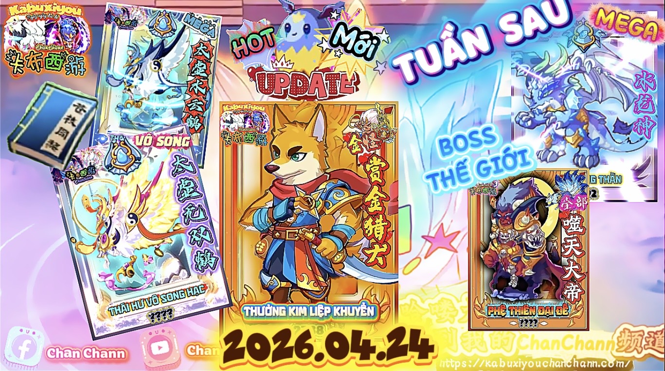Máy chủ Kabuxiyou sẽ tiến hành bảo trì và cập nhật từ 23:00 ngày 23 tháng 04 đến 5:00 ngày 24 tháng 04. Vui lòng đăng xuất trước thời gian này để tránh những thiệt hại không đáng có.